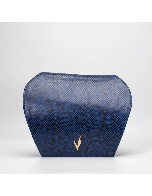 Capac din piele naturala pentru geanta de dama ADA albastru sarpe