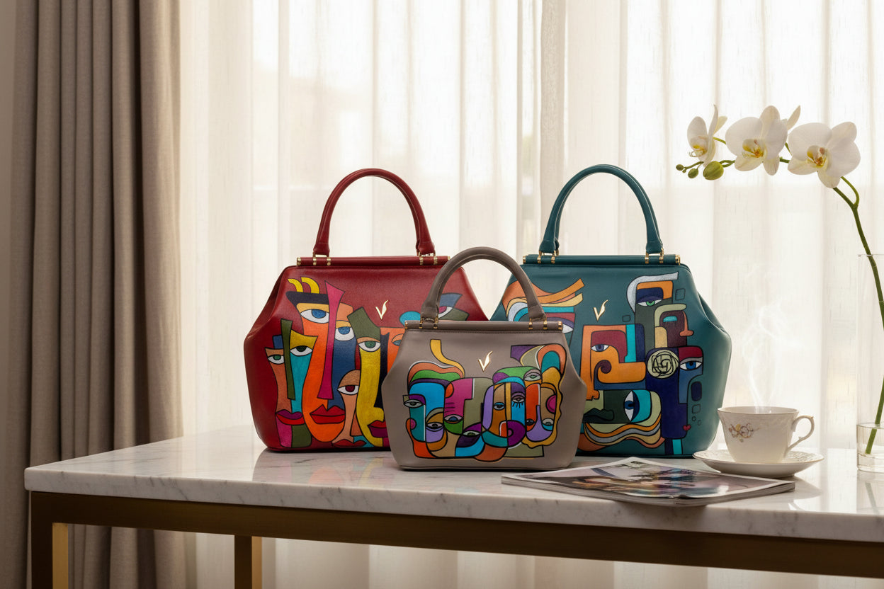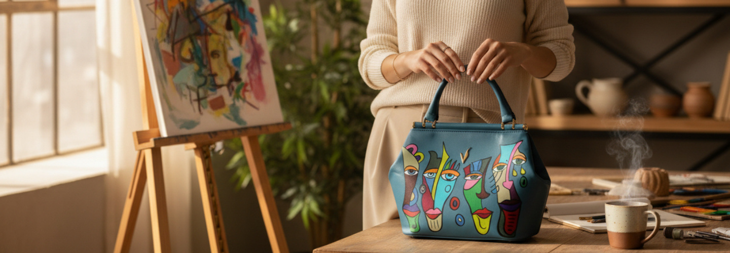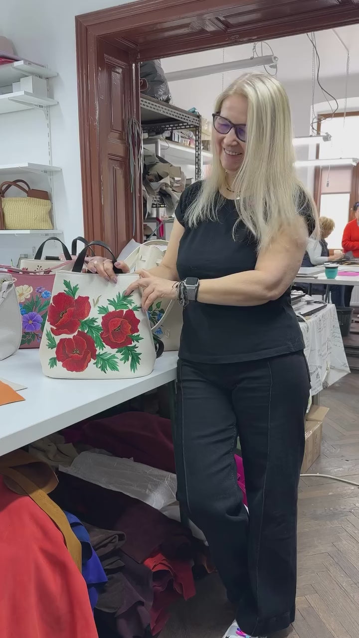 Capac din piele naturala pentru geanta de dama ADA bleumarin vitraliu