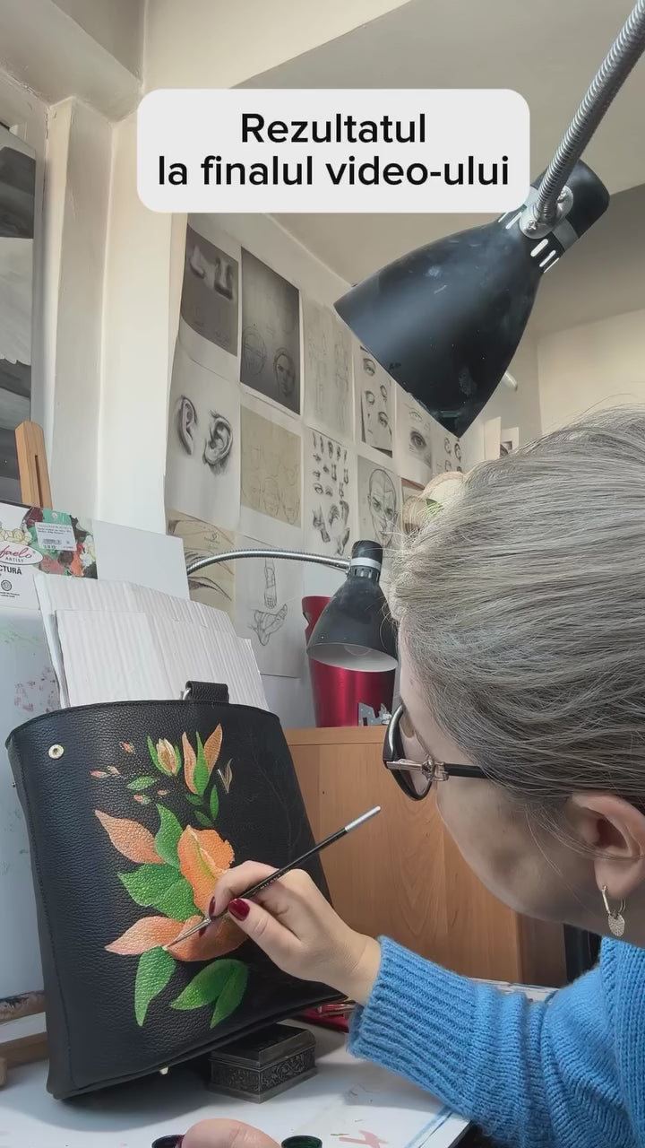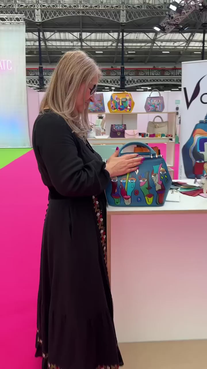 Capac din piele naturala pentru geanta de dama ADA bleumarin pestrit